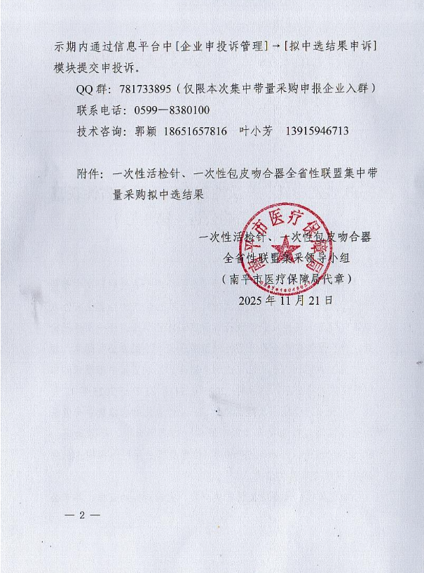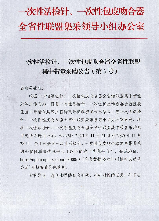 一次性活檢針、一次性包皮吻合器全省性聯(lián)盟集中帶量采購公告(第3號(hào))