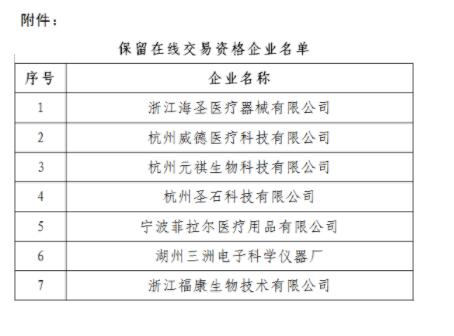 ? ? 二、繼續(xù)保留浙江海圣醫(yī)療器械有限公司等7家企業(yè)的在線交易資格(具體企業(yè)名單見附件)。