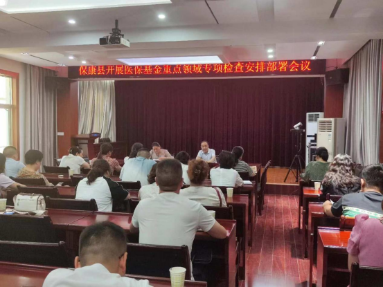 ??? 為進(jìn)一步加強(qiáng)醫(yī)?;鸨O(jiān)管,7月24日,??悼h醫(yī)療保障局組織召開醫(yī)療機(jī)構(gòu)使用醫(yī)?;鹬攸c(diǎn)領(lǐng)域自查自糾部署會(huì),保康縣醫(yī)保局分管醫(yī)保業(yè)務(wù)負(fù)責(zé)同志、基金監(jiān)管股全體人員、基金核查中心相關(guān)人員、轄區(qū)內(nèi)定點(diǎn)醫(yī)療機(jī)構(gòu)分管醫(yī)保負(fù)責(zé)同志共計(jì)50余人參加會(huì)議。