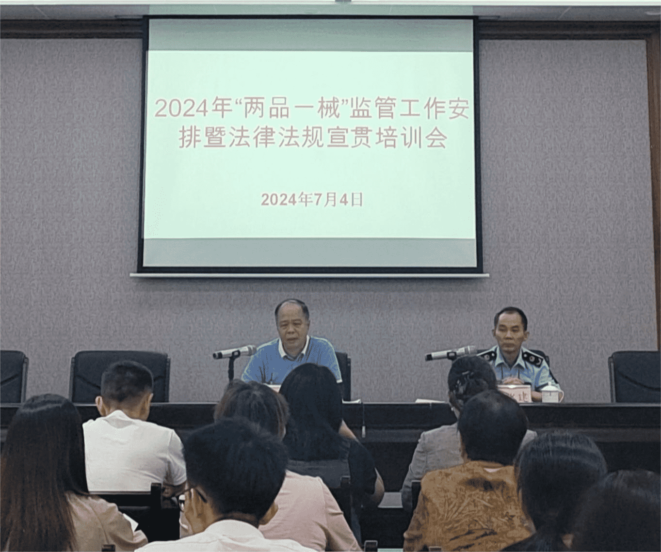 ??? 7月4日上午,市市場監(jiān)督管理局召開2024年“兩品一械”監(jiān)管工作安排暨法律法規(guī)宣貫培訓(xùn)會,“兩品一械”經(jīng)營企業(yè)負(fù)責(zé)人代表共30余人參加會議。