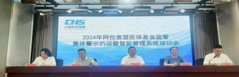 ??? 為加強醫(yī)療保障基金監(jiān)管,堅決打擊欺詐騙保行為,強化警示教育作用,壓實定點醫(yī)藥機構(gòu)自我管理主體責(zé)任,營造共同維護醫(yī)?;鸢踩牧己梅諊?,6月18日上午,阿拉善盟醫(yī)療保障局召開2024年醫(yī)?;鸨O(jiān)管集體警示約談暨智能管理系統(tǒng)培訓(xùn)會。盟醫(yī)保局黨組書記、局長侍國元出席會議并講話。盟醫(yī)保局全體班子成員、各旗(區(qū))醫(yī)保局、240余家定點醫(yī)藥機構(gòu)負(fù)責(zé)人參加會議。