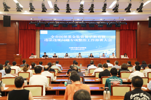??? 6月4日,無(wú)錫市醫(yī)保局召開(kāi)全市醫(yī)?;鸨O(jiān)管警示教育暨醫(yī)?;疬`法違規(guī)問(wèn)題專項(xiàng)整治工作部署大會(huì),市紀(jì)委監(jiān)委第四派駐組、市中院、市檢察院、市公安局、市財(cái)政局、市衛(wèi)健委和市市場(chǎng)監(jiān)管局等單位相關(guān)負(fù)責(zé)同志參會(huì)。全市醫(yī)保定點(diǎn)二級(jí)以上醫(yī)療機(jī)構(gòu)、部分基層醫(yī)療機(jī)構(gòu)、診所代表、大型連鎖藥店負(fù)責(zé)人以及醫(yī)療保障社會(huì)監(jiān)督員代表等總計(jì)200余人在主會(huì)場(chǎng)參加了會(huì)議,全市4000余家定點(diǎn)醫(yī)藥機(jī)構(gòu)以視頻會(huì)議形式參加了本次會(huì)議。市醫(yī)保局黨組書(shū)記、局長(zhǎng)蔣群聯(lián)出席會(huì)議并講話。