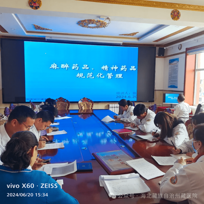 ??? 為進(jìn)一步加強(qiáng)麻醉藥品、精神藥品的規(guī)范使用及合理用藥,確保麻醉和精神藥品管理與應(yīng)用的安全,6月20日下午,海北州藏醫(yī)院在院門診樓三樓會議室開展了麻醉藥品和精神藥品規(guī)范化管理和合理使用培訓(xùn)會。來自全院各臨床科室的醫(yī)護(hù)人員和藥房工作人員參加了此次培訓(xùn)會。