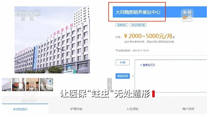 ??? 記者查閱了相關(guān)資料,大同魏都醫(yī)院成立于2014年5月,實(shí)際控制人為董某栓。而在董某栓名下,還注冊成立有大同魏都頤養(yǎng)康復(fù)中心。值得注意的是,這兩家醫(yī)院均開設(shè)在同一棟大樓內(nèi),醫(yī)務(wù)人員和醫(yī)療服務(wù)交叉使用。兩家醫(yī)院在實(shí)際經(jīng)營過程中相互引流,騙保手段極其隱蔽。