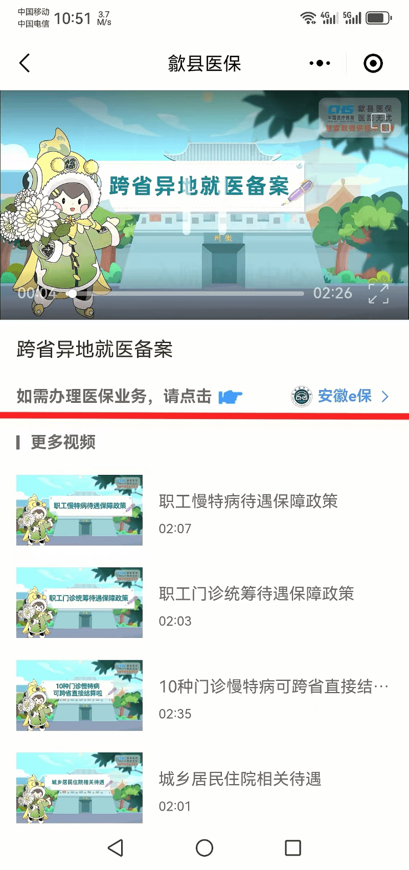 ??? “碼”上辦理業(yè)務(wù)。以“隨掃隨學(xué)、邊看邊辦”為導(dǎo)向,在“碼上懂”視頻宣傳平臺內(nèi)鏈接“安徽e保”小程序,群眾在掃碼了解醫(yī)保政策和操作流程后,通過鏈接跳轉(zhuǎn)至“安徽e?!敝苯愚k理查詢9大類38項(xiàng)醫(yī)保便民服務(wù)事項(xiàng),實(shí)現(xiàn)醫(yī)保事項(xiàng)快速自助辦理。目前通過平臺鏈接跳轉(zhuǎn)“安徽e保”辦事1419次,讓醫(yī)保政策宣傳和業(yè)務(wù)辦理查詢更加“接地氣”。
