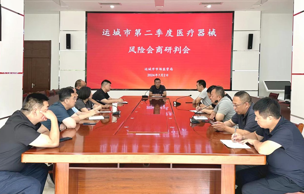 ??? 近日,運(yùn)城市市場(chǎng)監(jiān)管局組織召開(kāi)2024年第二季度醫(yī)療器械安全風(fēng)險(xiǎn)會(huì)商會(huì)議,梳理交流第二季度安全風(fēng)險(xiǎn)防控和風(fēng)險(xiǎn)會(huì)商情況,分析研判醫(yī)療器械領(lǐng)域形勢(shì)任務(wù)和風(fēng)險(xiǎn)防控措施。