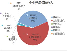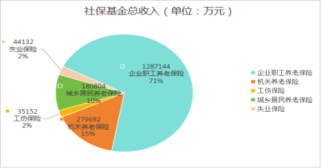 ??? 社?;鹂偸杖?826924.57萬元(其中:財政補貼收入199142.41萬元、上級補助收入774390.83萬元),比去年同期1645726.91萬元增加169084.66萬元,同比增幅11.01%,其中:企業(yè)職工養(yǎng)老保險1287144萬元、機關(guān)養(yǎng)老保險279692萬元、工傷保險35152萬元,城鄉(xiāng)居民養(yǎng)老保險180804萬元、失業(yè)保險44132萬元。