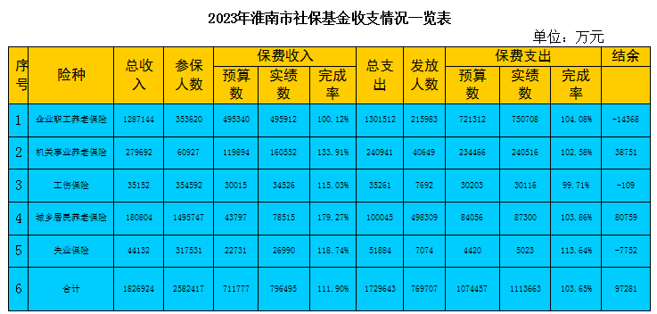 ?淮南市當(dāng)年社保基金結(jié)余85167.79萬元,年末累計結(jié)余601578.67萬元。