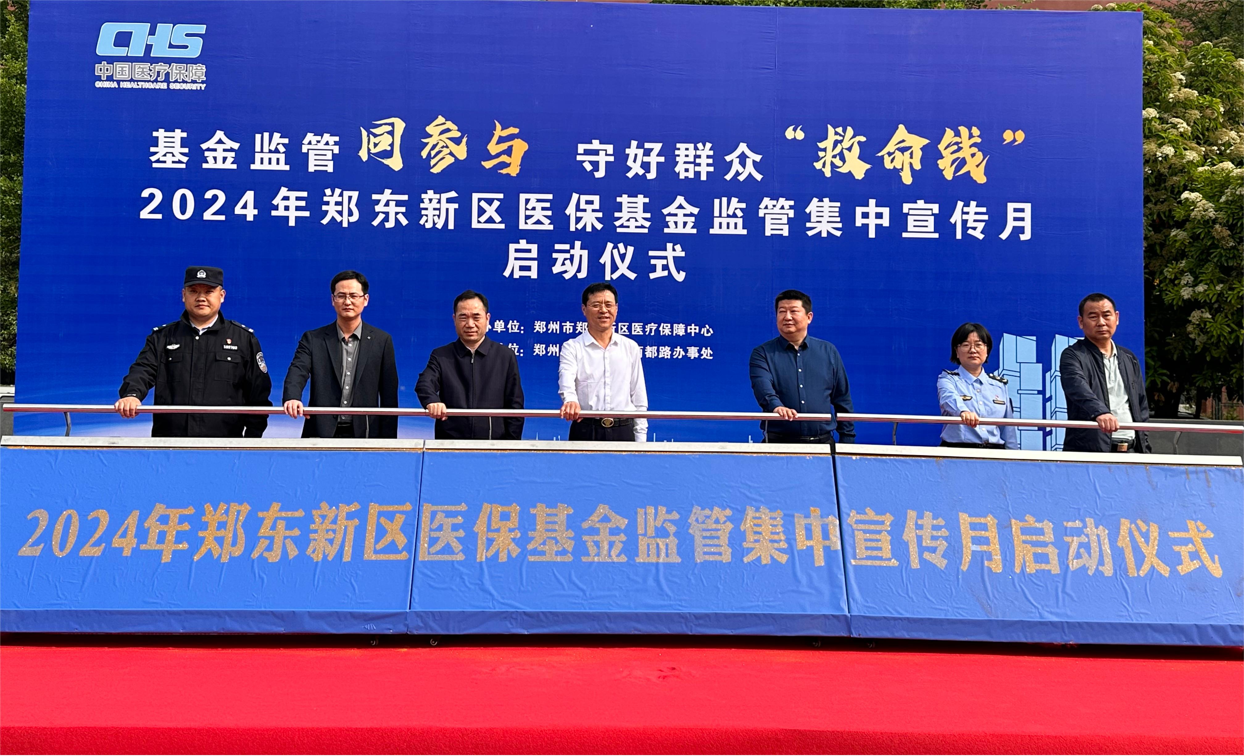 ??? 為貫徹落實(shí)省、市醫(yī)保局安排部署,加強(qiáng)醫(yī)療保障基金監(jiān)管,營(yíng)造全社會(huì)關(guān)注并自覺維護(hù)醫(yī)?;鸢踩牧己梅諊?。4月16日上午,鄭東新區(qū)以“基金監(jiān)管同參與 守好群眾‘救命錢’”為主題的集中宣傳月啟動(dòng)儀式在五州公園廣場(chǎng)舉行。鄭州市醫(yī)療保障局黨組成員、市醫(yī)療保障中心黨委書記、主任王進(jìn)興,鄭東新區(qū)一級(jí)調(diào)研員李紅旗出席活動(dòng)。鄭東新區(qū)醫(yī)保中心、社會(huì)事業(yè)局、市場(chǎng)監(jiān)管局、公安分局、各鄉(xiāng)鎮(zhèn)辦事處分管領(lǐng)導(dǎo),23所高校醫(yī)保負(fù)責(zé)人、定點(diǎn)醫(yī)藥機(jī)構(gòu)負(fù)責(zé)人等100余人參加活動(dòng)。