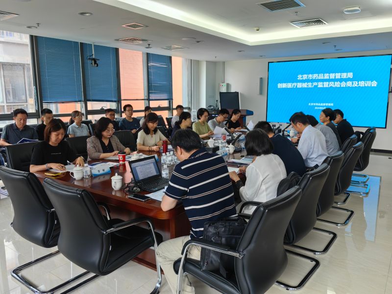 ??? 為適應(yīng)新形勢(shì)下醫(yī)療器械監(jiān)管工作需要,加強(qiáng)職業(yè)化專業(yè)化醫(yī)療器械檢查員隊(duì)伍建設(shè),強(qiáng)化創(chuàng)新醫(yī)療器械生產(chǎn)監(jiān)管,有效防控質(zhì)量安全風(fēng)險(xiǎn),近日,北京市藥監(jiān)局邀請(qǐng)國(guó)家藥監(jiān)局在北京品馳醫(yī)療設(shè)備股份有限公司(下稱“品馳醫(yī)療”)共同開展國(guó)家創(chuàng)新醫(yī)療器械產(chǎn)品上市后監(jiān)管風(fēng)險(xiǎn)會(huì)商,同步開展有源植入醫(yī)療器械監(jiān)管培訓(xùn)。國(guó)家藥監(jiān)局器械監(jiān)管司、核查中心相關(guān)負(fù)責(zé)人員,以及市藥監(jiān)局器械生產(chǎn)處、器械審查中心、不良反應(yīng)監(jiān)測(cè)中心、器檢院和市藥監(jiān)局各分局相關(guān)負(fù)責(zé)同志及監(jiān)管人員共23人參加。