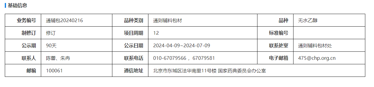 ??? 我委擬修訂無水乙醇國家藥用輔料標準。為確保標準的科學性、合理性和適用性,現(xiàn)將擬修訂的標準公示征求社會各界意見(詳見附件)。公示期自發(fā)布之日起三個月。請認真研核,若有異議,請及時在線反饋,并附相關說明、實驗數(shù)據(jù)和聯(lián)系方式。來函需打印后加蓋公章,個人來函需打印后本人簽名,并郵寄至我委通訊地址。
