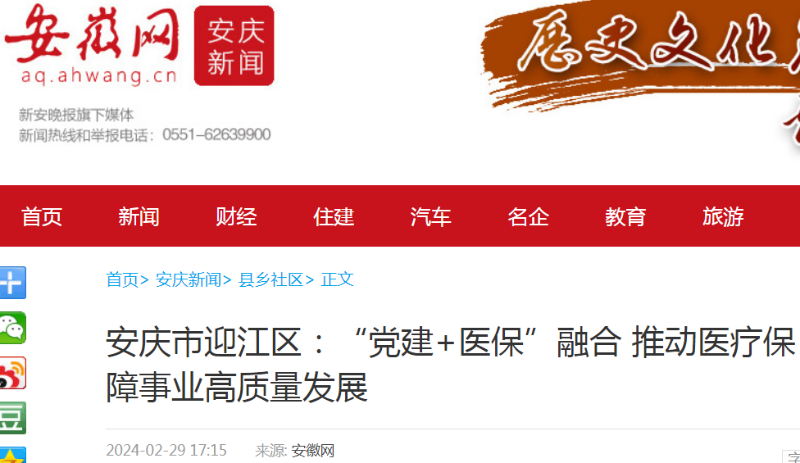 ??? 安徽網(wǎng)安慶消息??安慶市迎江區(qū)醫(yī)保局始終堅持聚焦機關黨建重點環(huán)節(jié),不斷強化黨建工作對醫(yī)保領域各項工作的統(tǒng)領作用,進一步增強機關黨建工作與業(yè)務工作緊密結(jié)合,全力推動“黨建+醫(yī)?!比诤习l(fā)展,讓組織力轉(zhuǎn)化為服務醫(yī)保高質(zhì)量發(fā)展的磅礴力量,不斷優(yōu)化醫(yī)保經(jīng)辦服務水平。