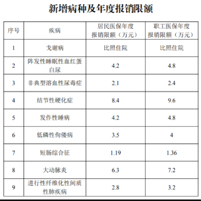 ?? 將戈謝病、結(jié)節(jié)性硬化癥、低磷性佝僂病等9種疾病認(rèn)定為門診特殊慢性病,新增納入我市基本醫(yī)保門診慢特病病種保障范圍,職工醫(yī)保:起付線600元,報(bào)銷比例85%;居民醫(yī)保:起付線與報(bào)銷比例參照住院標(biāo)準(zhǔn)。全省執(zhí)行統(tǒng)一的病種編碼、認(rèn)定標(biāo)準(zhǔn)和醫(yī)?;鹉甓茸罡咧Ц断揞~。具體如下: