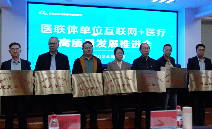 ??? 推進會上,相關(guān)領(lǐng)導(dǎo)為州直八縣兩市“互聯(lián)網(wǎng)+醫(yī)療”共建共享成員單位授牌。新疆醫(yī)科大學(xué)第一附屬醫(yī)院領(lǐng)導(dǎo)、伊犁州衛(wèi)健委領(lǐng)導(dǎo)及州直八縣兩市醫(yī)療單位領(lǐng)導(dǎo)參加推進會。