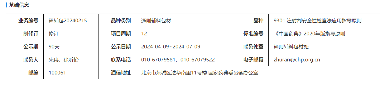 ??? 我委擬修訂9301 注射劑安全性檢查法應(yīng)用指導(dǎo)原則。為確保標(biāo)準(zhǔn)的科學(xué)性、合理性和適用性,現(xiàn)將擬修訂的9301 注射劑安全性檢查法應(yīng)用指導(dǎo)原則公示征求社會各界意見(詳見附件)。公示期自發(fā)布之日起三個月。請認(rèn)真研核,若有異議,請及時在線反饋,并附相關(guān)說明、實(shí)驗數(shù)據(jù)和聯(lián)系方式。來函需打印后加蓋公章,個人來函需打印后本人簽名,并郵寄至我委通訊地址。