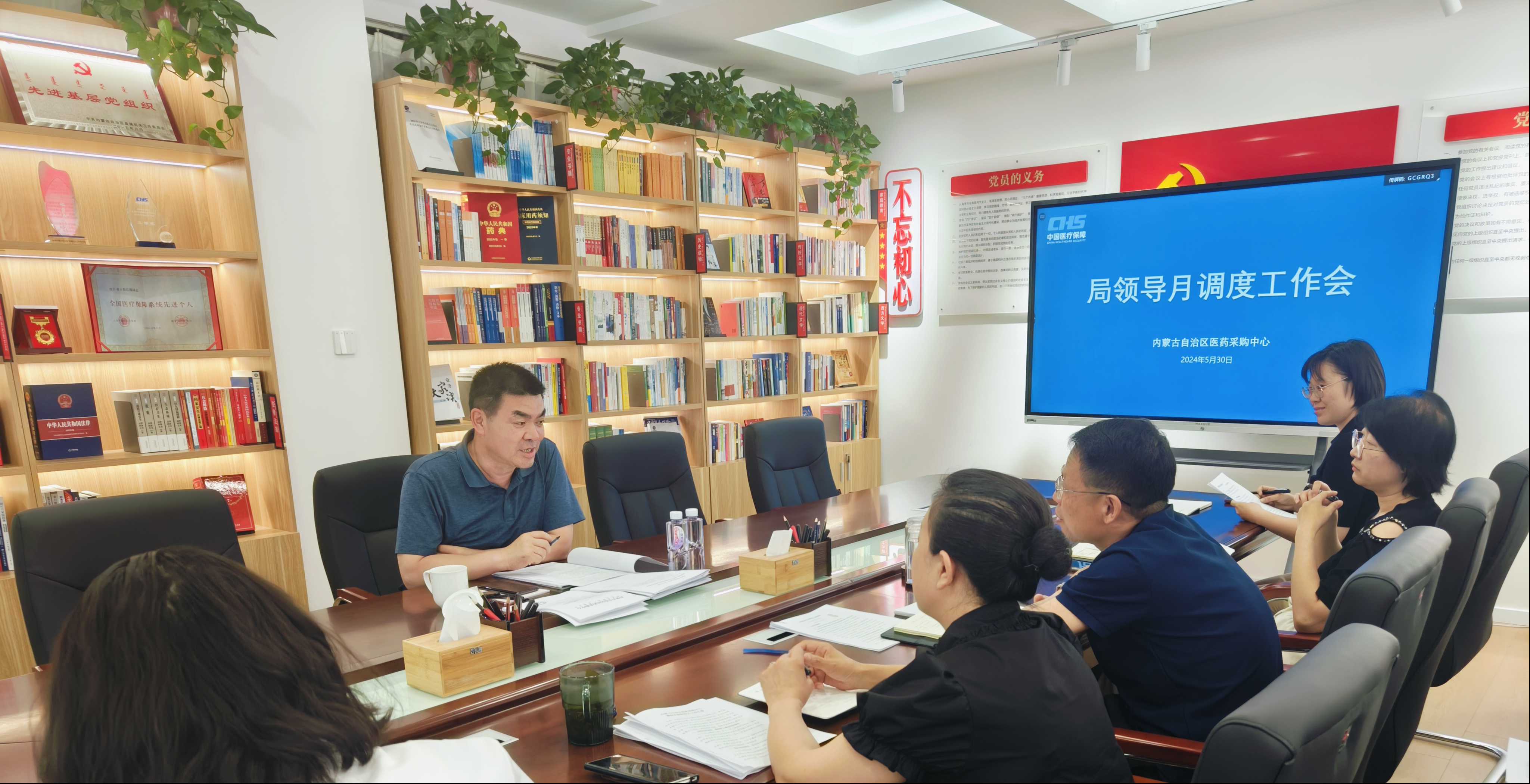 ??? 5月30日下午,自治區(qū)醫(yī)療保障局黨組成員、副局長(zhǎng)蔡紅宇同志赴自治區(qū)醫(yī)藥采購(gòu)中心開(kāi)展局領(lǐng)導(dǎo)月調(diào)度工作,自治區(qū)醫(yī)藥采購(gòu)中心領(lǐng)導(dǎo)及各科室負(fù)責(zé)人參加座談。